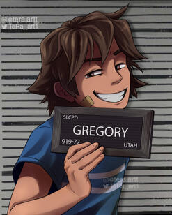 Name: Gregory FazbearAge: 12Height: 4’6ftPronouns: He/TheyStatus: AliveRelatives: Unknown ( Glamrock Bonnie )Cannon-Ending for the account: BurnTrap ( Stuck under the Pizzaplex in the caves and sewers )Enemies: Burntrap, Mimic, Vanny, Monty, Chica, Roxy, Sun/Moon, Music Man, Mini Music Man, Security Bot Staff